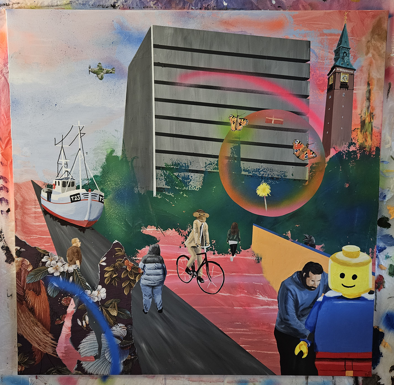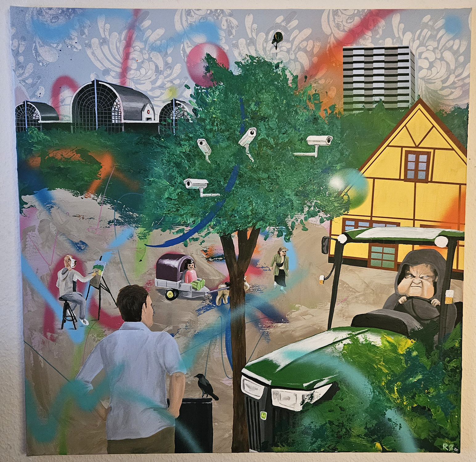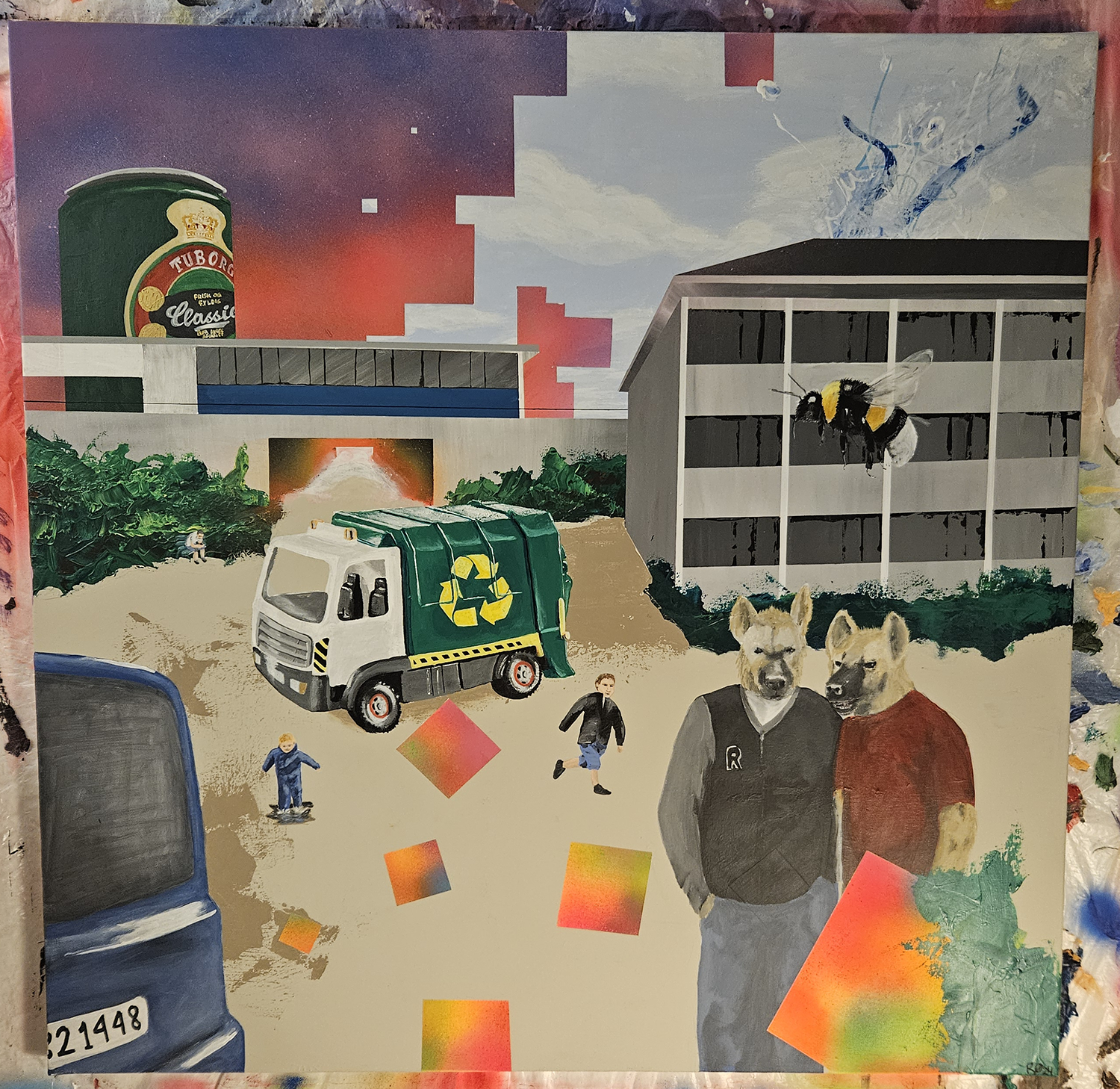 Om mig: Jeg bestod bygningsmaler uddannelsen i 2006. Året efter tog jeg et halvt år på Kunsthøjskole, på Ærø. Derfra arbejdede jeg som bygningsmaler, indtil at jeg tog en uddannelse som mediegrafiker. Jeg kom aldrig rigtigt til at arbejde som grafiker, men siden 2018 har jeg stået som butiksassistent i forskellige maling-butikker. I dag står jeg i nordens største maling-butik, Flügger House i Rødovre. Jeg har været med på små udstillinger siden 2022. Seneste udstilling var 8/9-1/11 2023 på Galleri Kingo i Taastrup. Jeg er før blevet kaldt for “vestegns-maler” som spiller lidt på egnsmalere. Da jeg er fra vestegnen og er inspireret af, hvad og hvem jeg ser, tager jeg gerne titlen på mig.