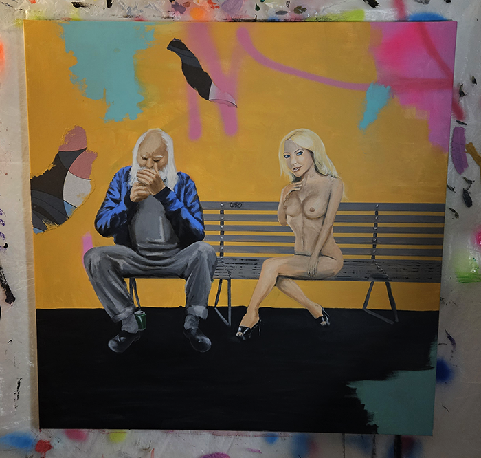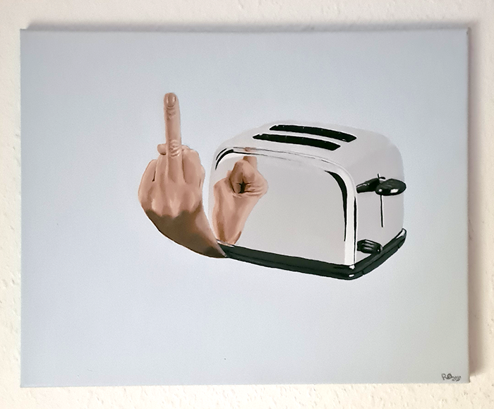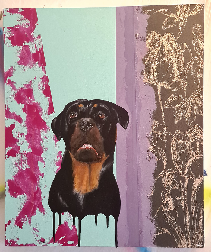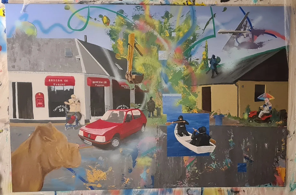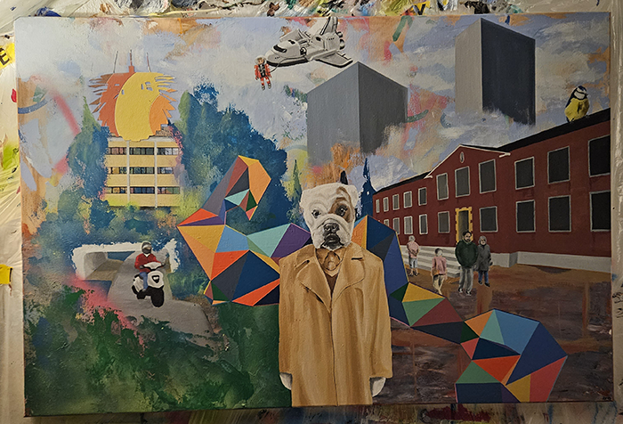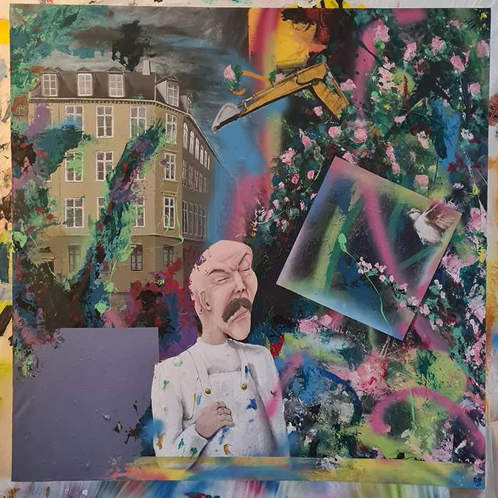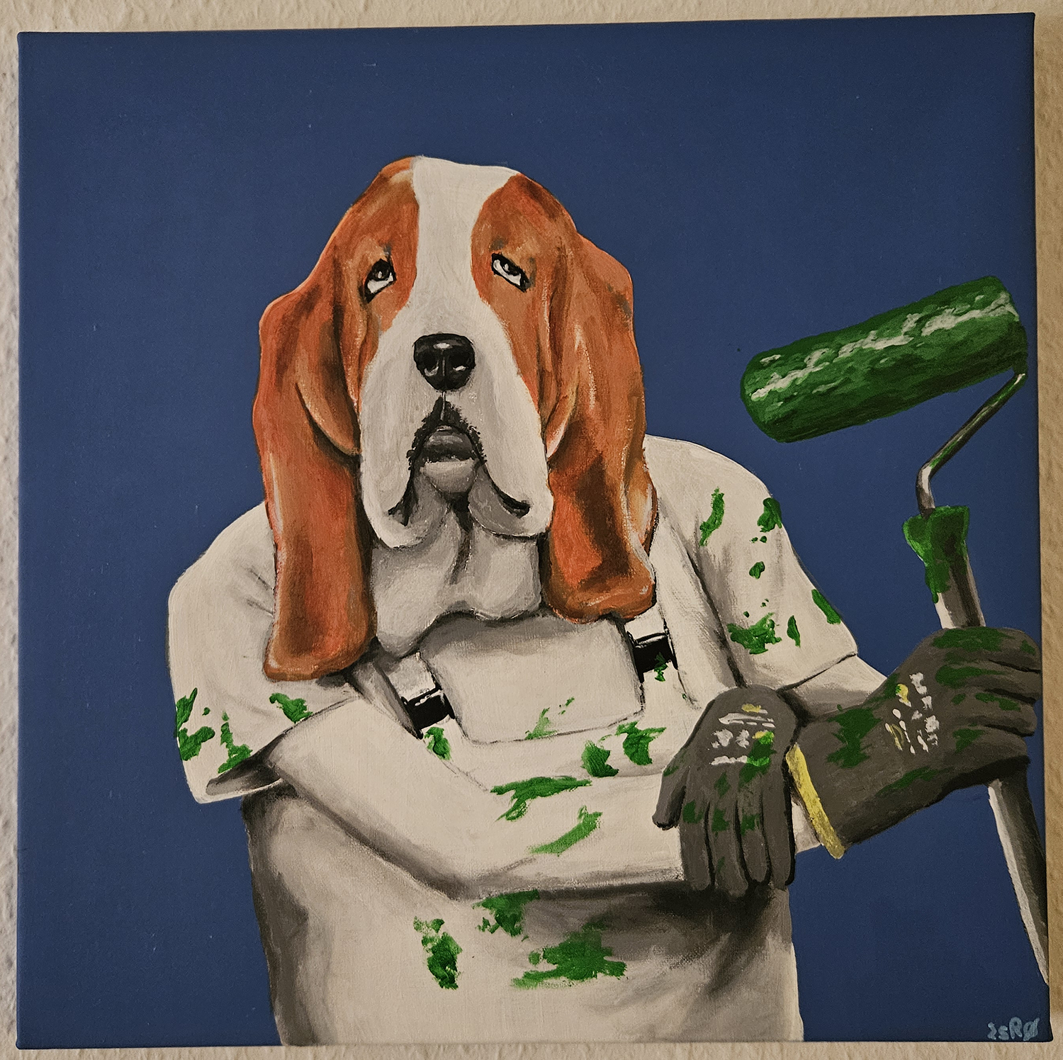 Om mig: Jeg bestod bygningsmaler uddannelsen i 2006. Året efter tog jeg et halvt år på Kunsthøjskole, på Ærø. Derfra arbejdede jeg som bygningsmaler, indtil at jeg tog en uddannelse som mediegrafiker. Jeg kom aldrig rigtigt til at arbejde som grafiker, men siden 2018 har jeg stået som butiksassistent i forskellige maling-butikker. I dag står jeg i nordens største maling-butik, Flügger House i Rødovre. Jeg har været med på små udstillinger siden 2022. Seneste udstilling var 8/9-1/11 2023 på Galleri Kingo i Taastrup. Jeg er før blevet kaldt for “vestegns-maler” som spiller lidt på egnsmalere. Da jeg er fra vestegnen og er inspireret af, hvad og hvem jeg ser, tager jeg gerne titlen på mig.